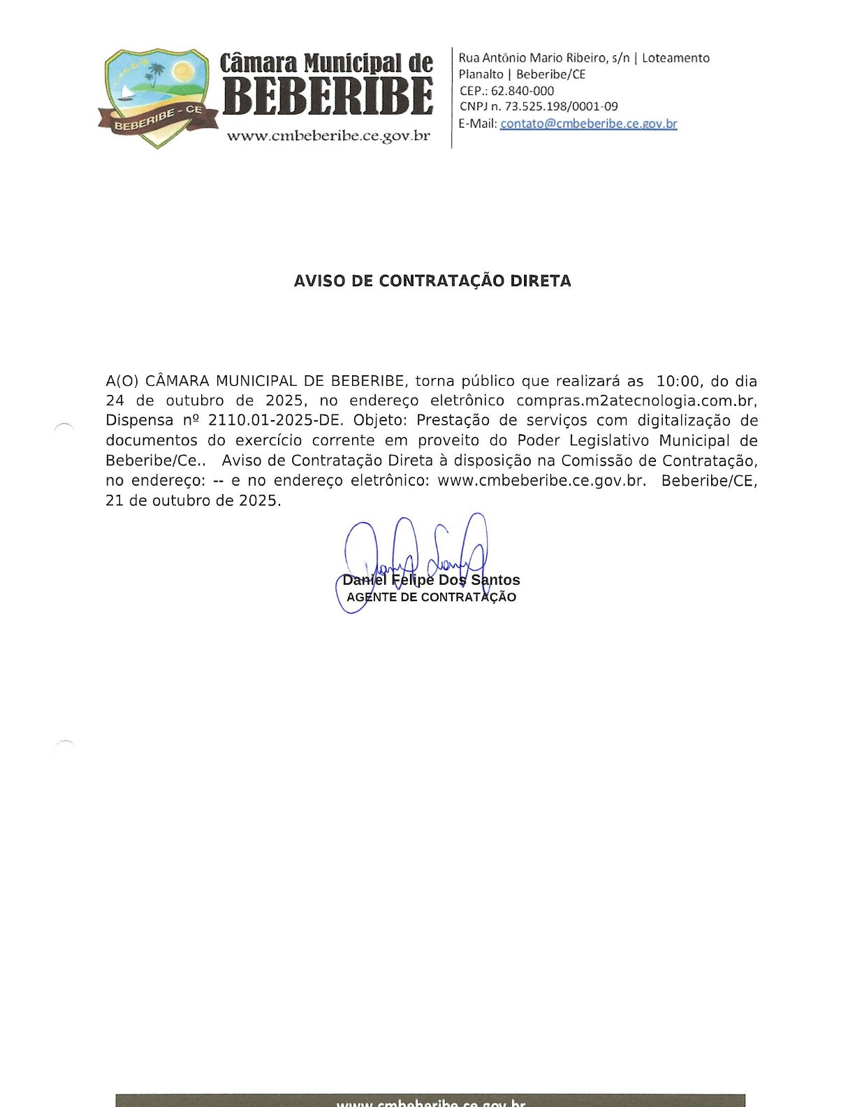 Nº: 2110.01-2025-DE - DISPENSA DE LICITAÇÃO